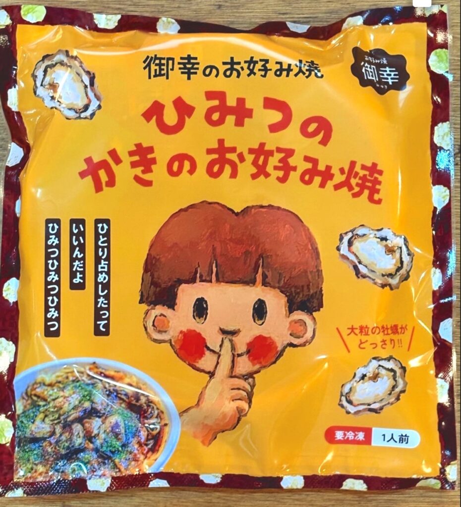 今シーズンから かわいいパッケージに入り、冷凍 『ひみつの かきのお好み焼』 として新登場!